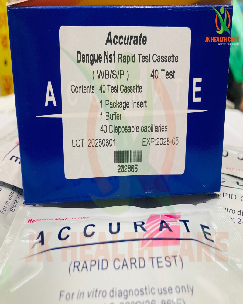 The Accurate Dengue NS1 Rapid Test Cassette is a high-precision, easy-to-use diagnostic kit designed for early detection of Dengue NS1 antigen from whole blood, serum, or plasma. Ideal for hospitals, clinics, diagnostic laboratories, and emergency healthcare setups, this kit delivers quick results within minutes, enabling timely clinical decisions during dengue outbreaks.